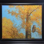 Claudio D'Angelo Great Horned Owl In An Aspen tree wildlife oil painting autumn fall leaves framed