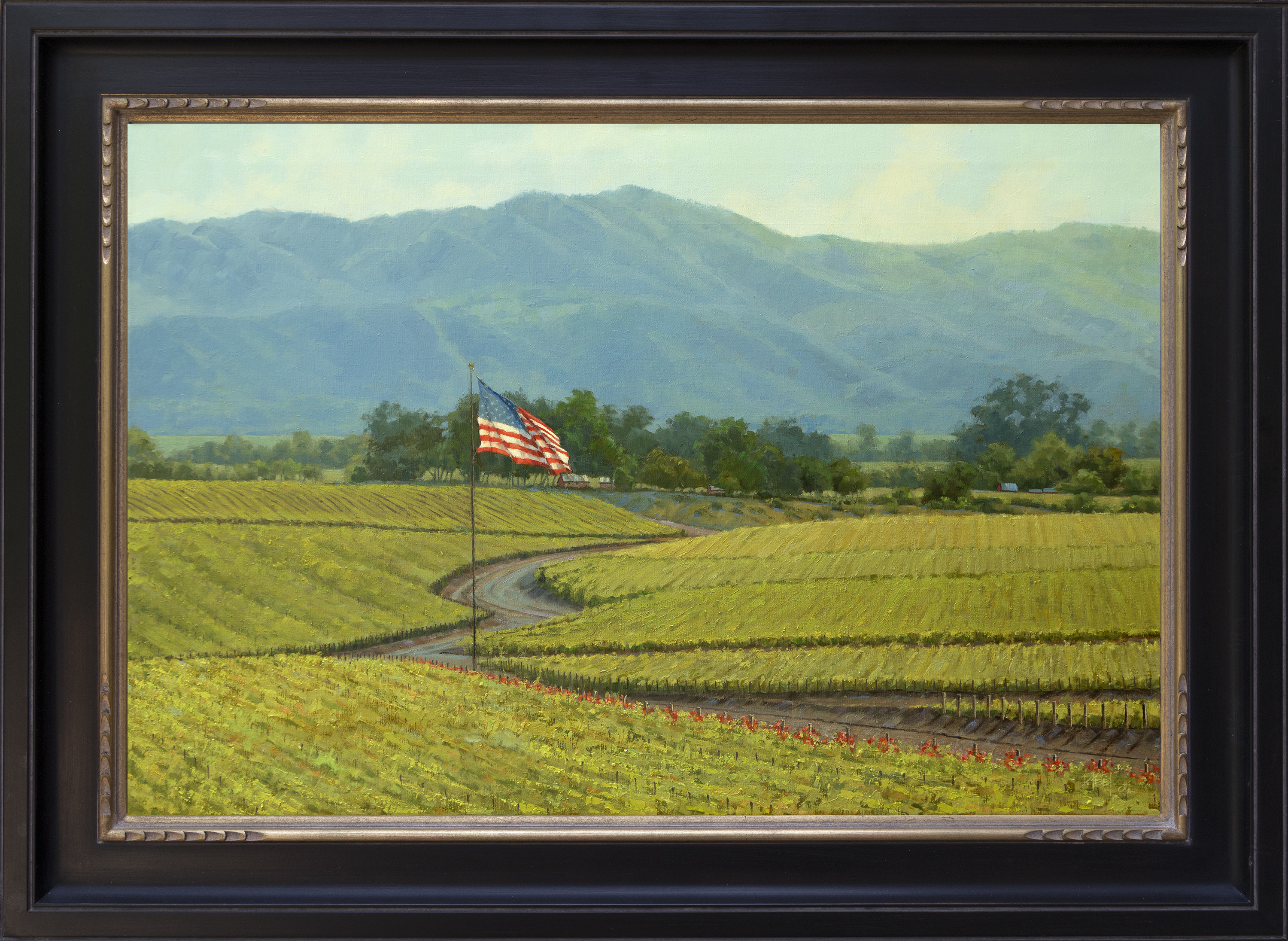 Darcie Peet Napa Strong grape winery California landscape oil painting American flag patriotic framed